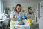 Corinne Suter bei der Vorbereitung für die Blutprobe.